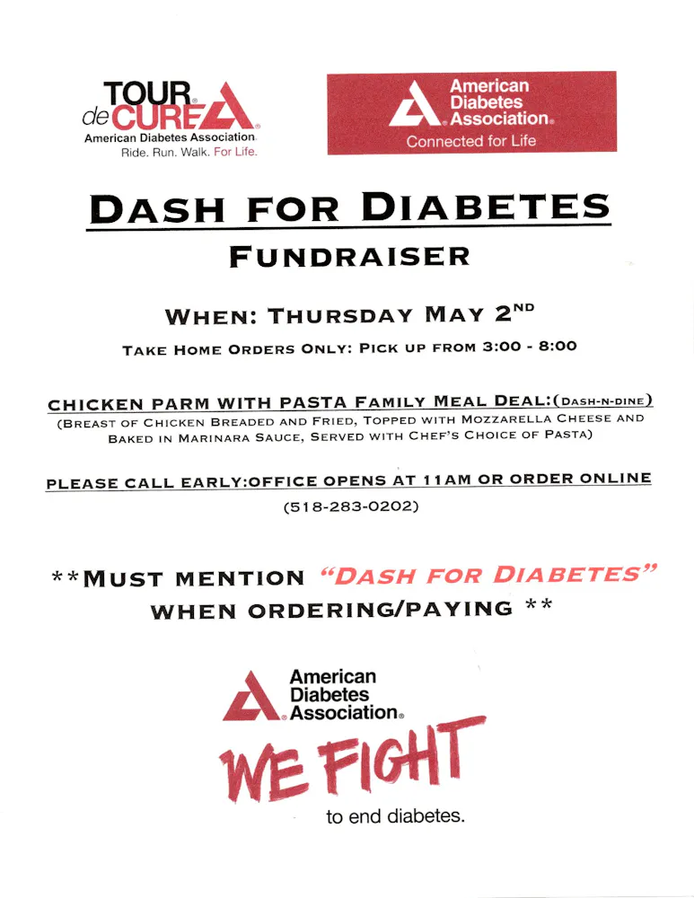 Everyone knows someone fighting Diabetes, Let's Fight Together! Join Paolo Lombardi's as we team up with the American Diabetes Society. Order Dash & Dine on Thursday May 2nd, to support a great cause!